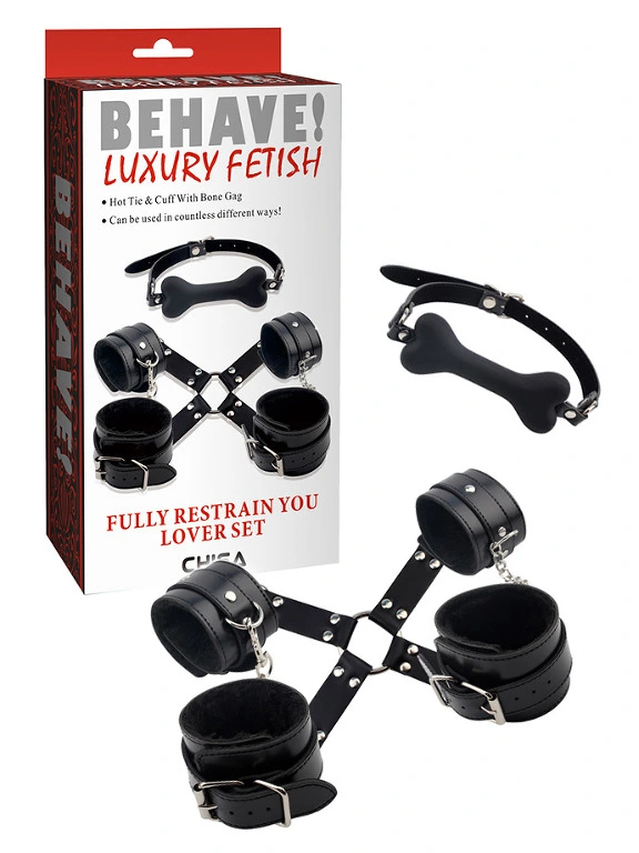 Le set Fully Restrain your Lover propose quatre menottes pour les poignets et les chevilles pour restreindre vos mouvements ainsi qu’un b?illon en silicone excitant.