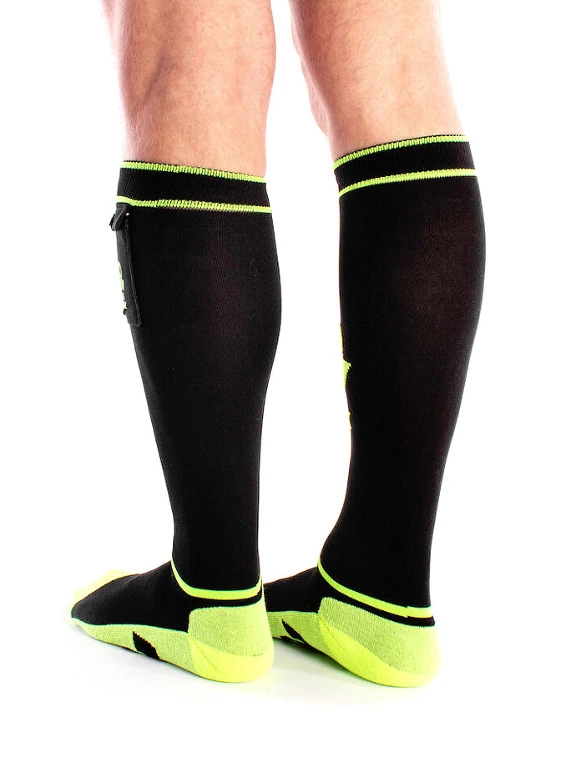 Sur le c?t? de chaque chaussette se trouve une petite poche o? vous pouvez ranger poppers, pr?servatifs, petites fioles de lubrifiant et autres accessoires amusants.