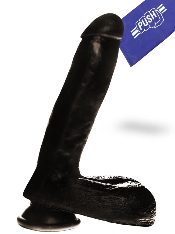 Le Dildo noir Push de 19 cm avec ventouse est un godemichet XL con?u de fa?on ? optimiser le plaisir de par sa forme et sa texture ferme,?r?aliste et douce au toucher.?Fait ? partir de PVC 100% hypoallerg?nique rigide ? l’int?rieur mais souple?? l’ext?rieur, son utilisation est sans danger pour le corps et la peau et ne contient ni toxines, ni phtalates.