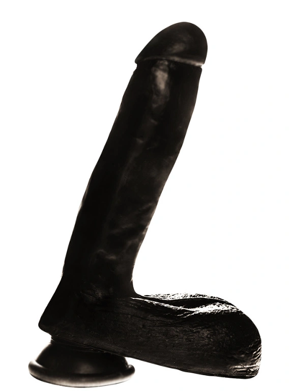 Le manche doux, dont les nervures sont d?taill?es mais plates, fait?19 cm de longueur pour?4,5 cm de largeur et se termine par un gland sans pr?puce dont la couronne?fait 0,5 cm de largeur. L’ur?tre n’est pas apparente. Le Dildo noir XL?Push de 19 cm avec ventouse pr?vaut gr?ce ? son membre doux et arrondi ainsi qu’? ses testicules protub?rantes – pour une excitation maximale?? port?e de main.