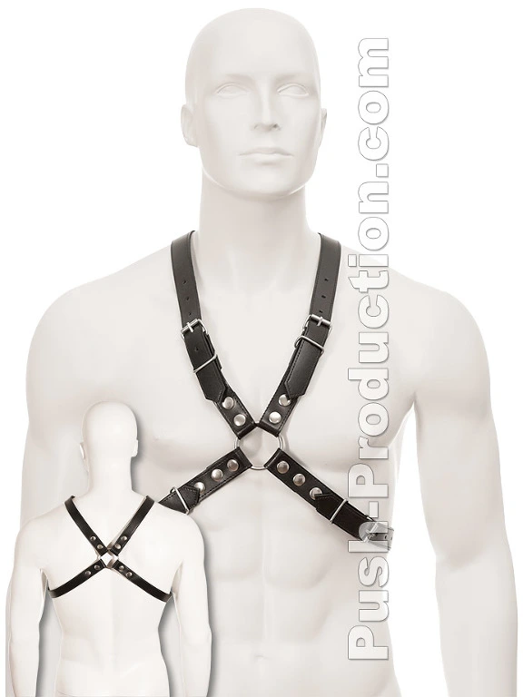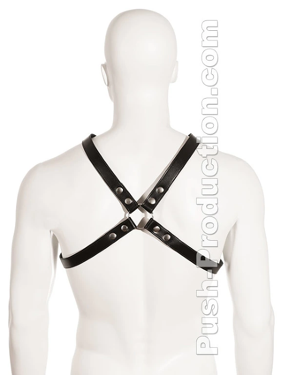 Ce harnais pour torse a une forme de X, tenue id?ale pour les clubs et les parades. Les sangles sont lisses des deux c?t?s et cousues tout le long du bord.