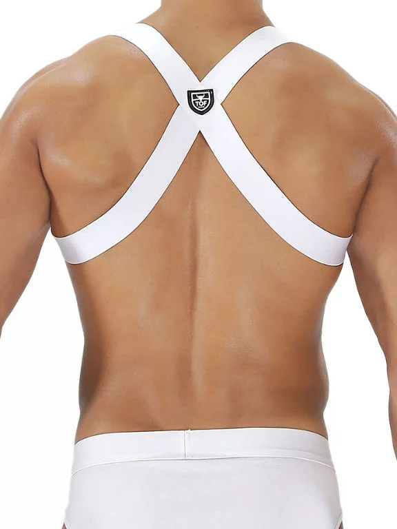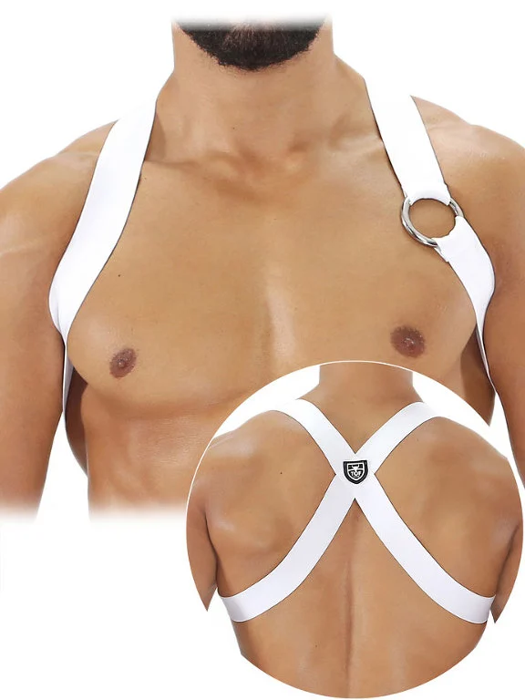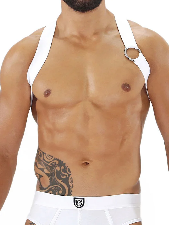 Avec le harnais ?lastique blanc Party Boy de TOF Paris, votre poitrine et vos muscles seront parfaitement mis en valeur gr?ce ? cette couleur blanche super lumineuse et accrocheuse.