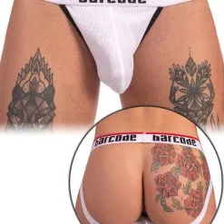 Le jock Cosme blanc de Barcode Berlin est un atout g?nial pour vos soir?es ? th?me, vous rendant irr?sistible et sexy, id?al comme sous-v?tement provocateur gr?ce aux lani?re soutenant et mettant en valeurs vos fesses bomb?es.