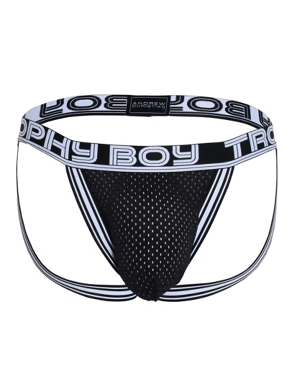 Soyez pr?t ? montrer vos meilleurs atouts avec le Jockstrap Trophy Boy en Mesh noir d’Andrew Christian, un sous-v?tement fantastique et ultra-sexy.