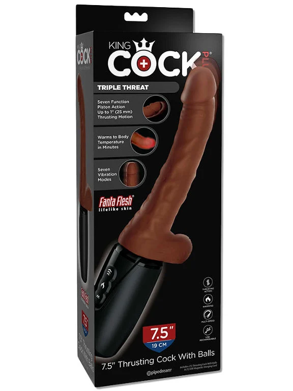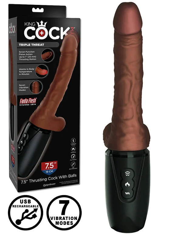 La Thrusting Cock and Balls de King Cock est une merveille ? la peau fonc?e qui vibre, bouge et chauffe ? votre guise pour des sensations incroyables au lit !