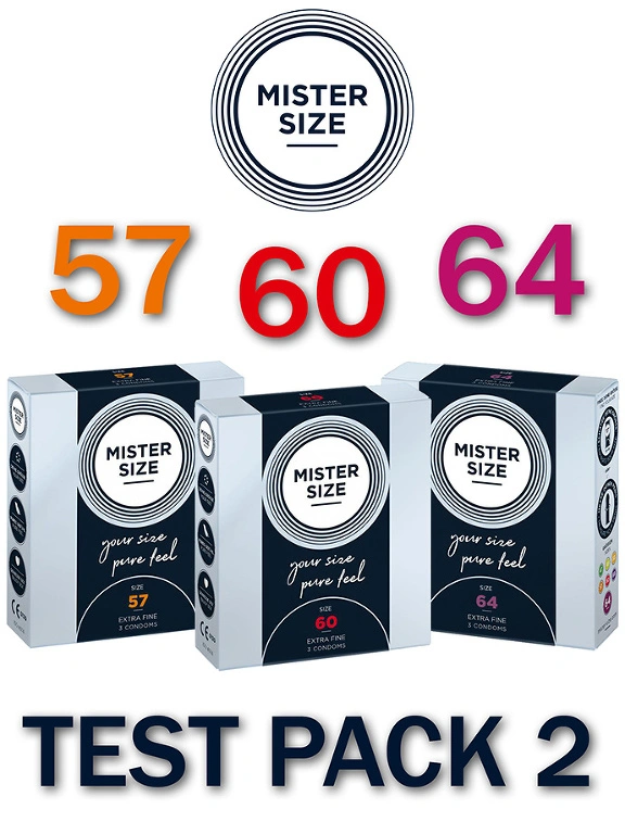 Avec le Test Pack 2 de Mister Size, vous pourrez tester trois tailles de pr?servatifs con?us pour s’adapter au mieux ? la taille de votre p?nis ! Essayez-les, vous allez les adorer !