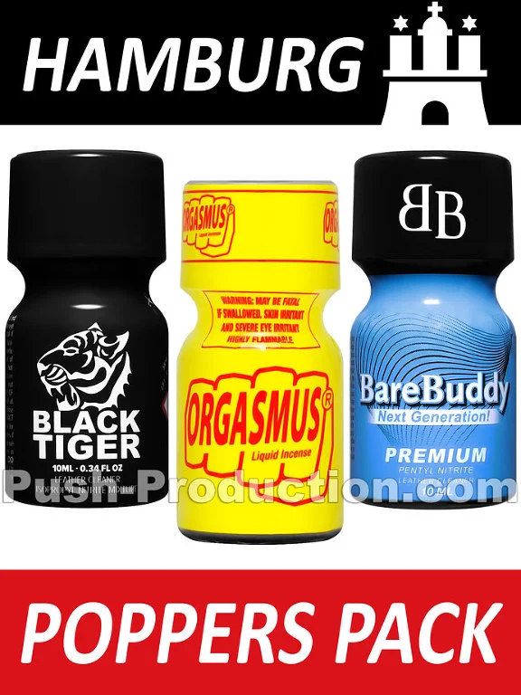 Avec le pack Hambourg, d?couvrez trois poppers super puissants ? un prix super avantageux en livraison rapide gr?ce aux super marques Tiger, Orgasmus et BareBuddy.?