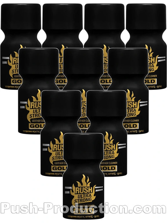 Le pack de 10 poppers Rush Ultra Strong Gold Label vous permet de b?n?ficier d’une r?duction importante sur cette formule best-seller, con?ue pour les fans de poppers ultra puissants !