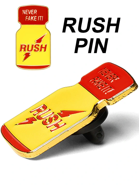 Montrez votre amour pour le poppers Rush le plus populaire et le plus aim? au monde avec ce fantastique pin’s en ?mail aux couleurs vives disponible dans notre Poppers-Shop.