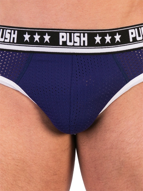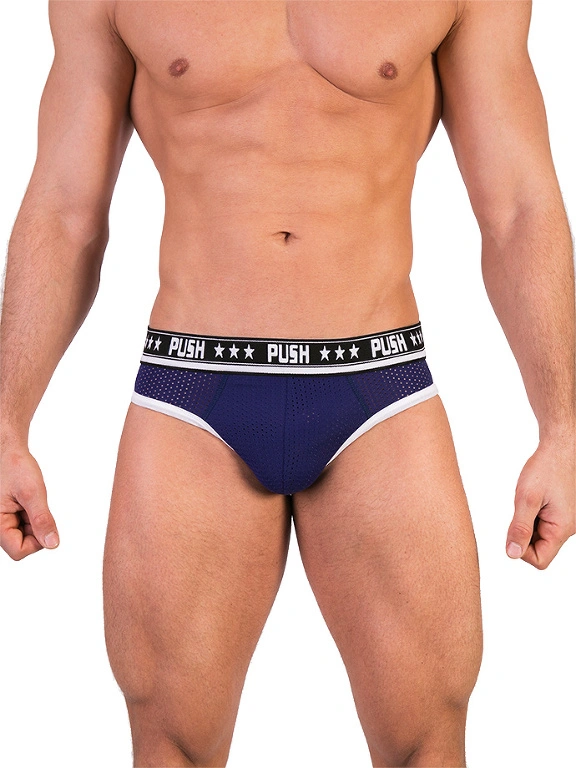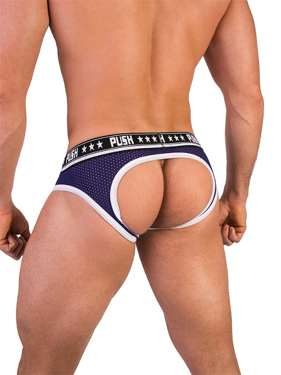 Avec le slip Premium Mesh Hole de PUSH, vous allez enfin pouvoir montrer votre c?t? sexy o? que vous soyez ! Ce slip bleu marine et blanc PUSH au design soign? combine une poche frontale moulante, une fen?tre sur vos fesses nues et une ceinture amincissante qui en font un sous-v?tement polyvalent et sexy pour l?homme moderne.