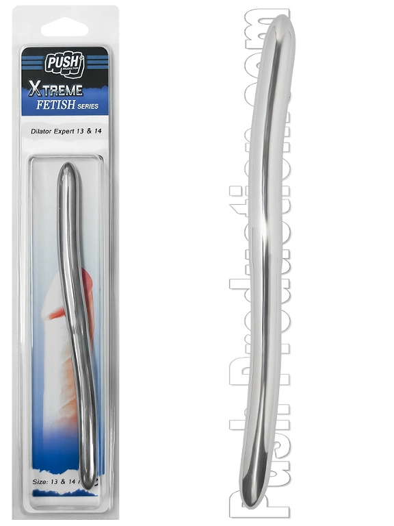 Ustensile pour stimuler l?ur?tre avec double extr?mit?. Ce dilatateur poss?de deux extr?mit?s avec diff?rents diam?tres. Le diam?tre change au milieu. Fait en acier inoxydable finement poli.