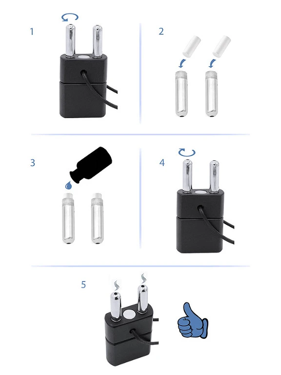 Instructions : d?visser les tubes – les remplir avec de l’ouate ou un filtre (max. 5 mm d’?paisseur) – arroser de poppers jusqu’? ce que le mat?riau absorbant soit imbib? – visser ensemble – commencer. Cr?ez votre propre ar?me en m?langeant plusieurs poppers.