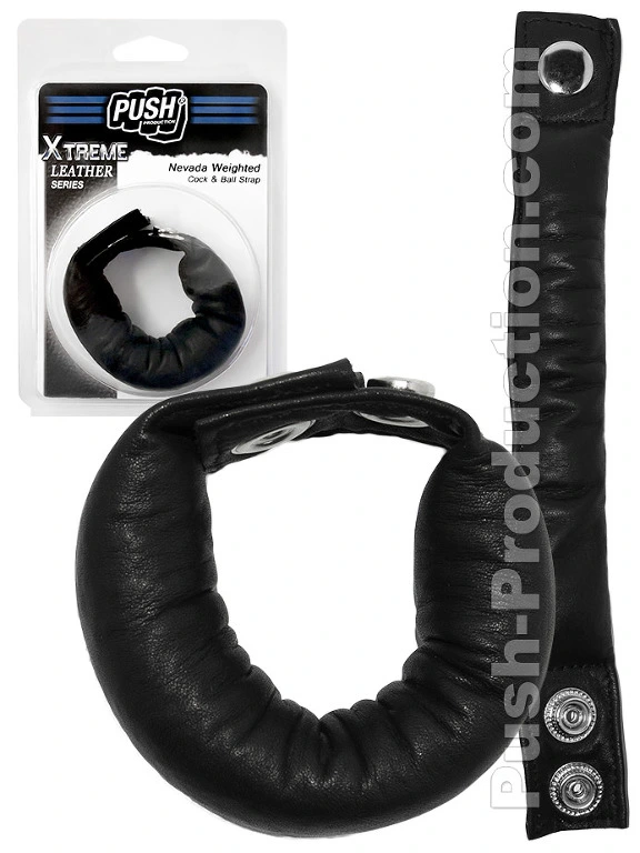 Ce cockring et ballstretcher lest? Nevada de la gamme Push Xtreme Leather est fait en cuir v?ritable et est rempli de billes de plomb. Cet anneau de p?nis p?se gentiment sur vos testicules avec 175 g. Ce produit est tr?s agr?able ? porter grace au cuir souple. L?anneau de p?nis peut etre ajust? ? votre guise ? l?aide de boutons pressions. Ce mod?le est flexible et correspond ? tous les diam?tres entre 28 et 48 mm.