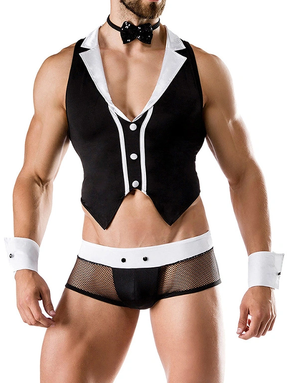 Le costume de Barman de Saresia Men est parfait pour vos jeux de r?le sexy ou pour une f?te costum?e sexy. Vous serez au centre de l’attention gr?ce au tissu transparent type mesh, ? sa coupe incroyablement bien ajust?e et au d?collet? plongeant et sexy.