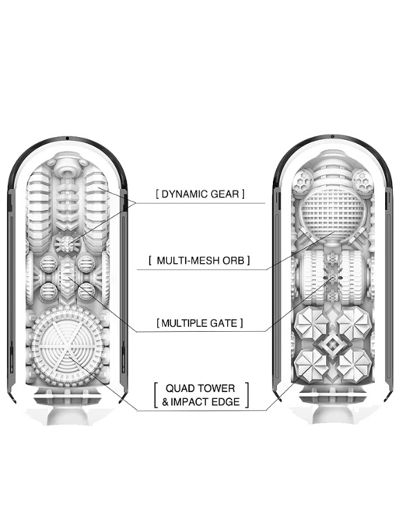 L’int?rieur du manchon est rempli ? ras bord de textures stimulantes, avec les Dynamic Gears et le Multi-Mesh Orb ? la pointe pour stimuler ton bulbe, jusqu’aux Multiple Gates, Quad Towers et Impact Edges, pour que vous puissiez profiter des sensations les plus profondes et les plus stimulantes d?s que vous p?n?trez le masturbateur.