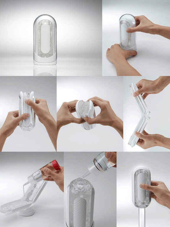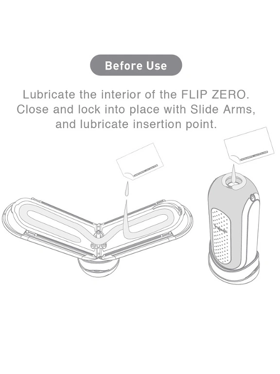 Pour une lubrification optimale, ouvre le Tenga Flip Zero Gravity et applique ton lubrifiant pr?f?r? ? base d’eau sur le manchon int?rieur. Ensuite, fermez le masturbateur et verouillez-le avec les bras coulissants qui servent ?galement de support de s?chage.