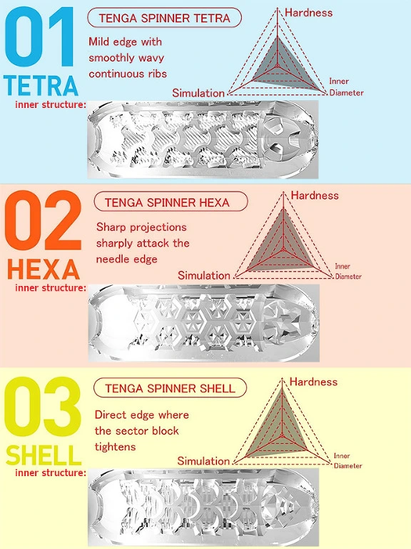 Le tout nouveau masturbateur Tenga Hexa de la collection Spinner m?rite qu’on vous le pr?sente gr?ce ? sa technologie Twist fantastique : d?s que vous l’ins?rez, vous sentirez sa vrille interne se r?tracter et se tordre, vous massant de fa?on serr?e et envoyant des sensations incroyables que vous n’avez jamais connues auparavant. Faites des va-et-vients de haut en bas pour que la vrille carresse doucement le long de votre p?nis. Vous pouvez en plus serrer le masturbateur avec vos mains pour ressentir des sensations encore plus fortes !
