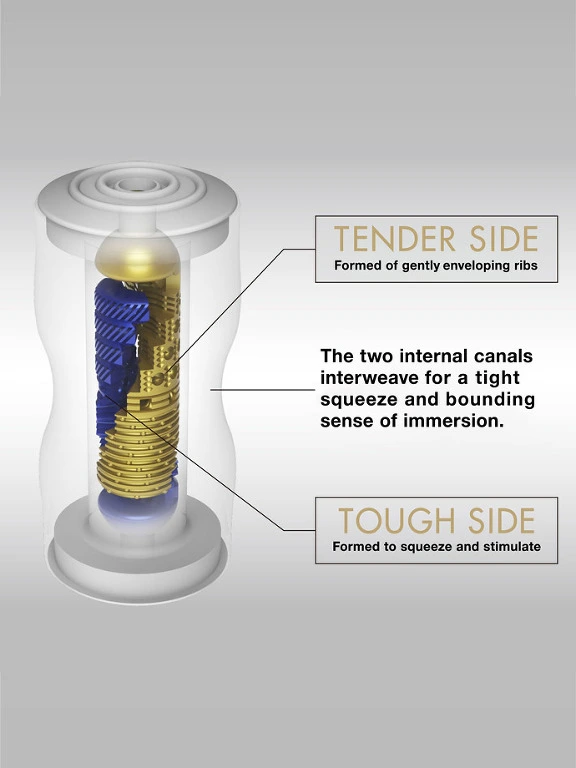 Le masturbateur Dual Sensation Cup est une nouveaut? de la s?rie Tenga Premium avec deux tunnels pour des sensations diff?rentes de chaque c?t?. Testez le c?t? Tender plus spacieux et des picots agr?ables de tout son long, ou bien le c?t? Tough avec un tunnel plus serr? et des nodules plus accentu?s pour des sensations encore plus intenses.