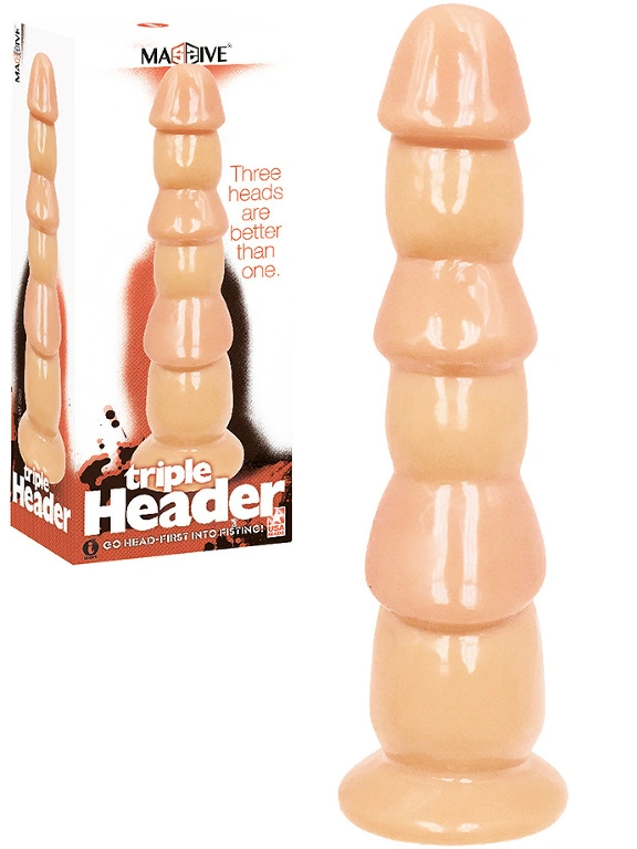 Triple Header, c’est trois queues moul?es ensemble formant un ?norme gode de trois tailles diff?rentes qui augmentent au fur et ? mesure que l’on descend dessus. Les trois queues augmentent en taille au fur et ? mesure que vous descendez le long de son manche, mais ne d?sesp?rez pas si vous ne pouvez pas tout rentrer du premier coup ! Il s’agit d’un gode d’entra?nement pour le fisting, ce qui signifie qu’il vous ouvre la voie ? un entra?nement plus intense. Le gland arrondi permet des insertions tr?s faciles et agr?ables. Vous adorerez son noyau ferme et son mat?riau qui vous assure stabilit? et s?curit? pendant votre s?ance, tandis que la puissante ventouse vous permet de le coller sur n’importe quelle surface plane comme le mur de la douche ou le sol pour quelques rod?os en mains libres ! Le manche et les glands sont tr?s r?alistes et d?taill?s pour plus de r?alisme lorsque vous jouez avec ce triple gode ?norme.