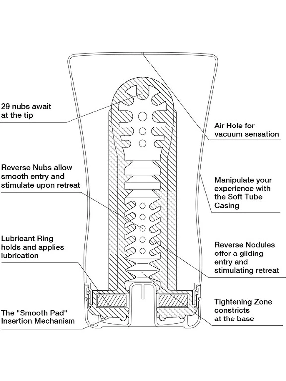 Cette vaginette Tenga Soft Tube vous donne un contr?le total sur la sensation de constriction. En comprimant le masturbateur de fa?on plus ou moins serr?e, les moyeux d’aspiration et de stimulation ? l’int?rieur stimulent tant?t dur, tant?t mou. Profitez de diff?rentes variations d’exp?riences pour des pipes excit?es. Comme dans le Tenga – Deep Throat Cup Masturbator, une valve sp?ciale, r?glable par pression du doigt, fournit un effet de succion tr?s stimulant.