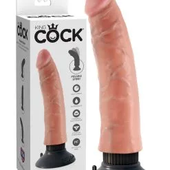 Ce gode de?17,8 cm de chez King Cock est?vibrant et captive par sa forme r?aliste.?Un?regard suffit pour comprendre que ce dildo a??t? fait avec soin et?on peut difficilement le distinguer d’un vrai p?nis. Du gland ? la verge en passant par les veines d?taill?es, tous les d?tails sont l?. Dedans, un puissant?moteur vibratoire envoie des pulsations et vibrations stimulantes pour un plaisir jouissif. Souple et flexible, ce dildo s’adapte parfaitement ?vos dimensions et votre anatomie pour stimuler le bon endroit. La puissance des vibrations est r?glable par le bouton rotatif.